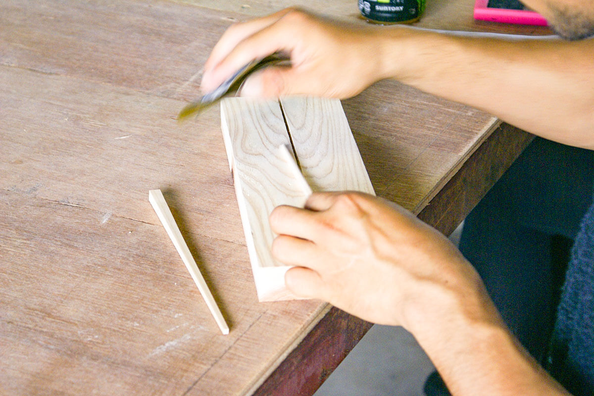 伊勢に来られる観光客がお土産として購入する、伊勢の檜を使った箸の商品開発の仕事を行います。考えた箸を、実際につくります。
